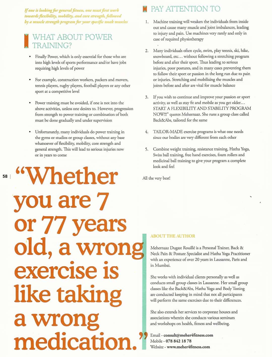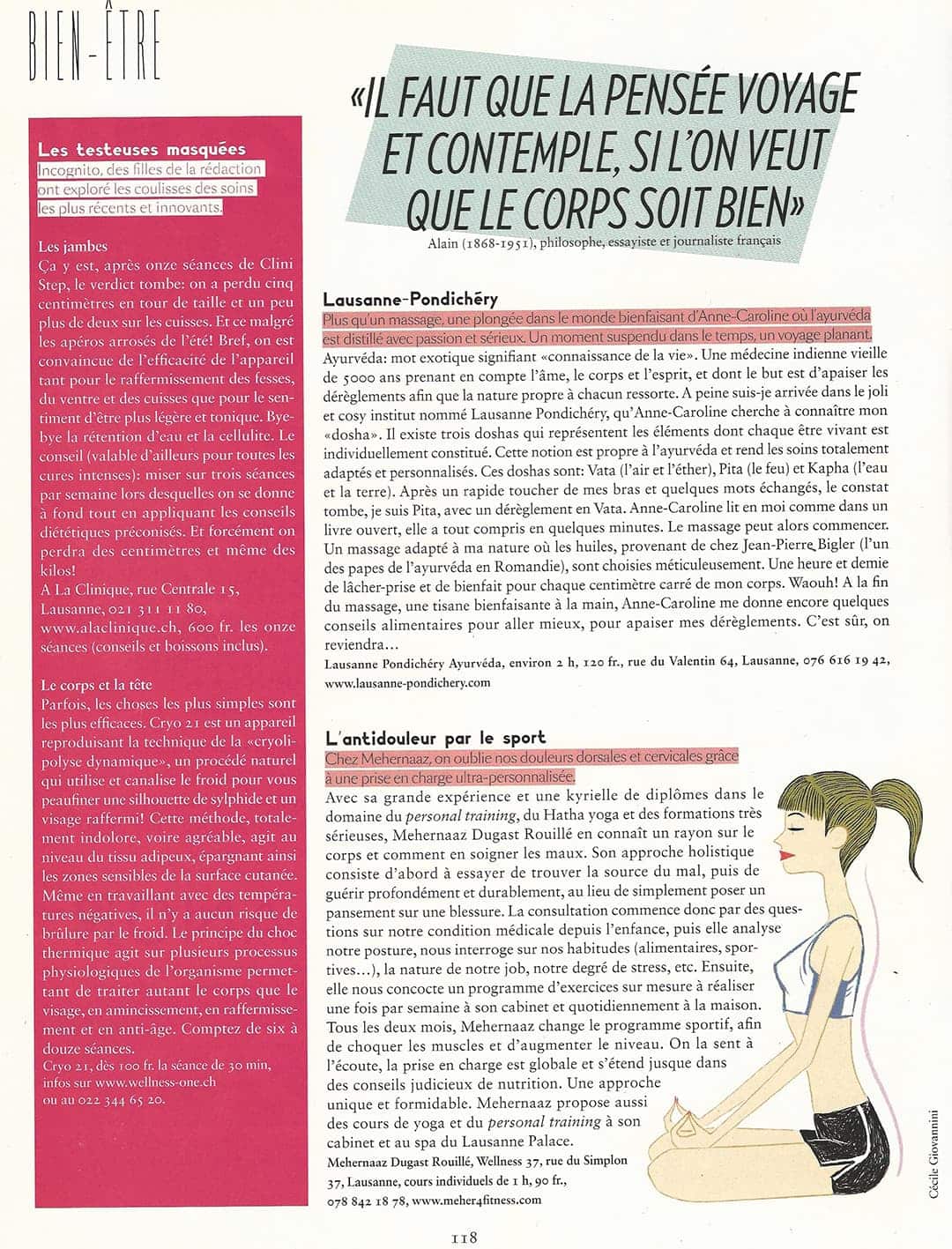 Les différents parutions dans la presse spécialisé, témoignent les bienfaits du YOGA pour une meilleure santé physique et mentale. Ce n’est pas un secret que le succès des prestations de Mehernaaz est grâce à une qualité de service irréprochable, un accompagnement sur mesure et méthodique des progrès de chaque patient. Pour en savoir plus, veuillez cliquer sur les images ci-dessous.